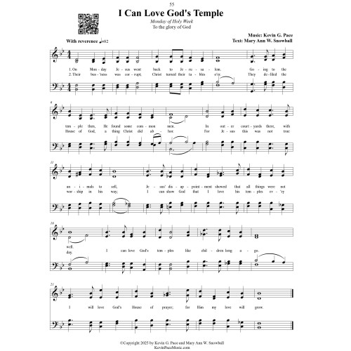 This hymn tenderly recounts the moment when Jesus cleansed the temple in Jerusalem, expressing His sorrow and righteous indignation at the corruption He witnessed. With reverent lyrics by Mary Ann W. Snowball and moving music by Kevin G. Pace, the hymn contrasts the Savior’s deep respect for sacred space with the irreverence of those who defiled it. The final verse gently shifts the focus to the singer, inviting personal commitment to honor and love God’s holy temples. Through reflective melody and heartfelt words, the hymn encourages worshipers—young and old—to cherish sacred places as Jesus did.