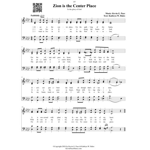 A beautiful, sacred hymn with music by Kevin G. Pace and text by Kathryn W. Hales. This heartfelt hymn beautifully captures the spiritual essence of Zion—not merely as a physical location, but as a condition of the heart. With poetic clarity, it affirms that Zion is for the pure, the valiant, and those who center their lives on Jesus Christ. The verses remind us that Zion can be found anywhere—across lands and oceans—so long as one holds fast to faith and lives with charity. Whether in a home, a congregation, or a sacred temple, the hymn proclaims that Zion exists wherever Christ dwells within us. It's a tender expression of longing to belong to the holy city of God by living a covenant-centered life, full of grace and discipleship.