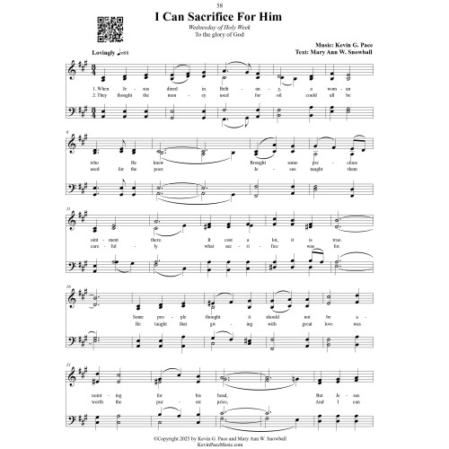 This touching hymn, with music by Kevin G. Pace and text by Mary Ann W. Snowball, beautifully reflects the story of the woman who anointed Jesus in Bethany. With tender reverence, it explores the themes of love, sacrifice, and devotion, emphasizing that true giving flows from the heart. The gentle melody and thoughtful lyrics teach that Christ values sincere, loving sacrifice over mere material worth. As the hymn progresses, it invites each listener to personally embrace this principle, offering love and service to the Savior as the woman did—freely, fully, and with deep devotion.