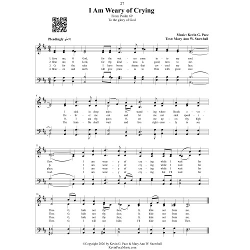 A beautiful, sacred hymn inspired by Psalm 69. Music by Kevin G. Pace. Text by Mary Ann W. Snowball.