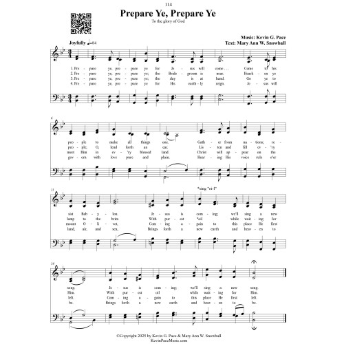 A bold, exciting, sacred hymn with music by Kevin G. Pace and text by Mary Ann W. Snowball.