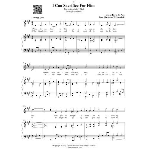 This touching hymn, with music by Kevin G. Pace and text by Mary Ann W. Snowball, beautifully reflects the story of the woman who anointed Jesus in Bethany. With tender reverence, it explores the themes of love, sacrifice, and devotion, emphasizing that true giving flows from the heart. The gentle melody and thoughtful lyrics teach that Christ values sincere, loving sacrifice over mere material worth. As the hymn progresses, it invites each listener to personally embrace this principle, offering love and service to the Savior as the woman did—freely, fully, and with deep devotion.
