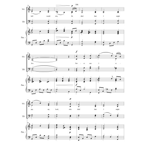 A beautiful choral arrangement for SATB choir. Music by Kevin G. Pace. Text by Mark R. Fotheringham. This piece has a minimum purchase requirement of 7 copies. The price is set low to enable you to purchase enough copies for your choir. For larger choirs, please purchase sufficient copies (at least one copy per two choir members).