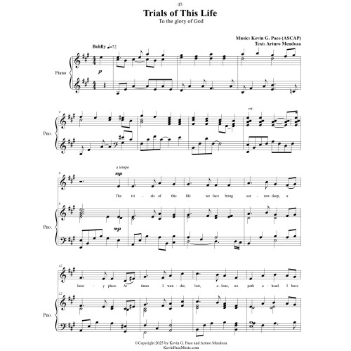 A beautiful, sacred vocal solo with music by Kevin G. Pace and text by Arturo Mendoza.